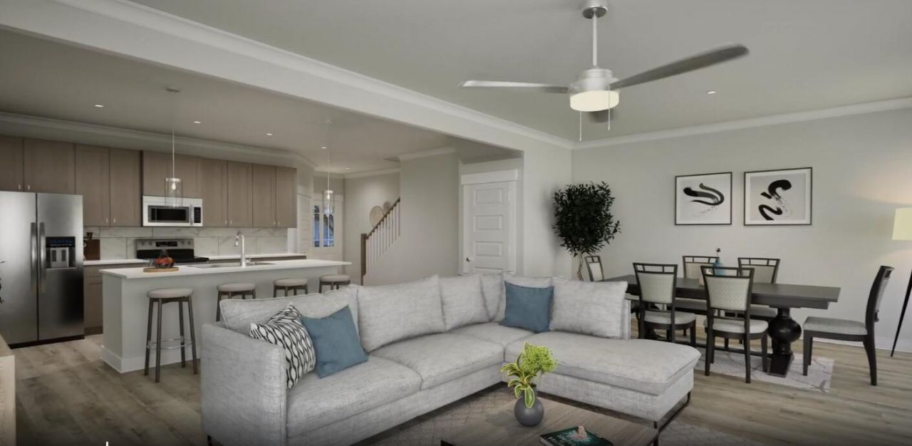 The Winston. The covered front porch is perfect for sipping sweet tea and greeting your neighbors. Inside you find the social hub of the home at the quartz island in the kitchen. While everyone gathers around, snacking on appetizers and sharing stories about their week you don't miss a beat with the openness of the living space. Enjoy dining in the eat-in kitchen, or step right outside to your covered patio, put your grill skills to work and break bread outside. Upstairs there is plenty of space to relax & rejuvenate in the generously sized primary suite. Enjoy a soak in the garden tub to end your day. You'll love the multi-function use of the loft as a game room, study, playroom, or second living room! All 3 bedrooms upstairs feature trey ceilings. One additional bedroom downstairs with a full bathroom is perfect for guests. 3-Car garage for all your toys! Photos/videos are of a similar home, options & upgrades may not be included in price. Residents of the Nest at Owl's Head will enjoy the use of the resort-style pool and spring-fed lake!